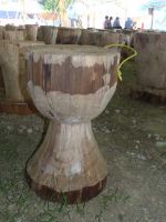 [i] The photo shows a large covered area with many rows of small, carved wooden seats referred to in Spanish as “bancos” which also happens to be the Spanish word for bank.