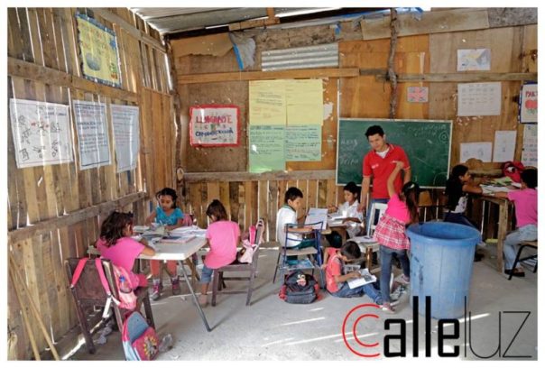 One might think that they give classes in a school located in the jungle or in the state’s Sierra (mountains), but we’re talking about a multi-grade classroom located in the Unión Antorchista District, of Chiapa de Corzo municipality, a scare three kilometers from where a modern commercial complex is built that gives a vanguard touch to the capital of Chiapas.