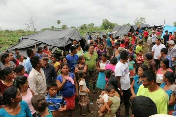 Guatemalan refugees stranded at the border with Mexico after police evicted them from their lands in the Petén.