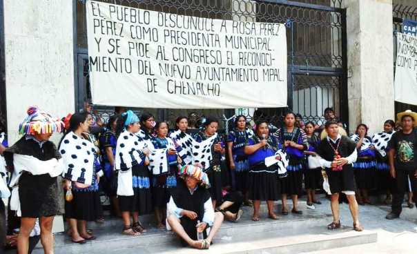 “The people don’t recognize Rosa Perez as the municipal president of Chenalhó and we ask that Congress recognize the new municipal council of Chenalhó.”