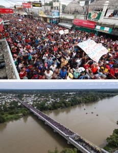 And when she opened her eyes, she thought she was in Mexico. When the young Honduran woman, who had fainted, opened her eyes, Mexico was now within her reach because the Migrant Caravan was breaking the fence at the International Bridge placed by the Guatemalan Police and the stampede of thousands of people was forming. She recovered and joined the group that had just forced open the bridge’s bars and disappeared among the crow