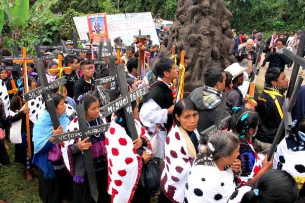 Acteal survivors carry crosses with the names of those massacred.