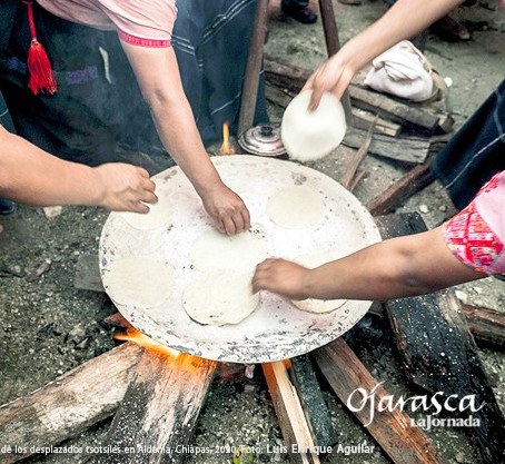 Chenalhó’s escalation against Aldama follows a disturbingly similar pattern to that of the 1997 crisis of paramilitary violence. Displacements of families left in conditions of helplessness and fear, forced by gunfire to leave their homes and plots of land. They survive in precariousness, hunger and cold. The State does not take care of their health, security or food, except for the supply of processed food and flour which has little nutritional value but is profitable in terms of propaganda.