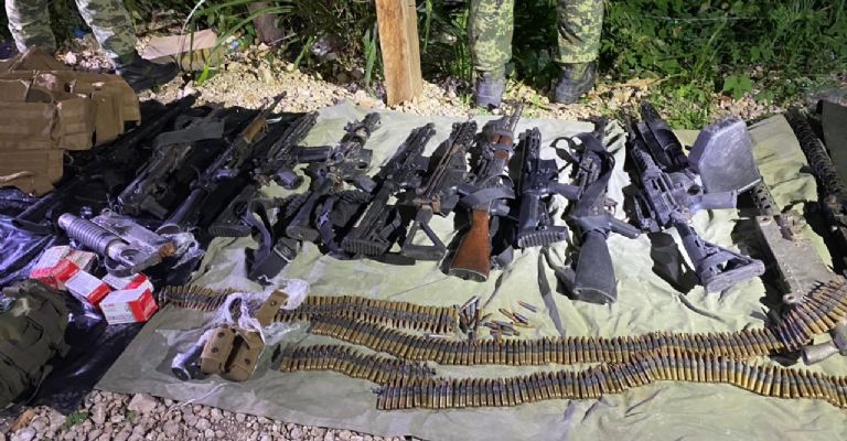 Sedena seized rifles, grenades, explosives, bulletproof vests, magazines and bags of marijuana from these people.