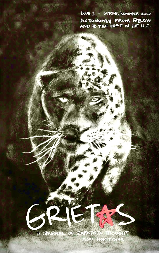 The first issue of Grietas journal, titled “Autonomy From Below and to the Left in the U.S.,” takes up the topic of autonomy in the United States from a variety of perspectives. Contributors, all active participants in local and regional movements for justice and in solidarity with Indigenous land struggles, reflect on past and current struggles for liberation, while offering glimpses of possible autonomous futures inspired by Zapatismo and the seven principles of leading by obeying.