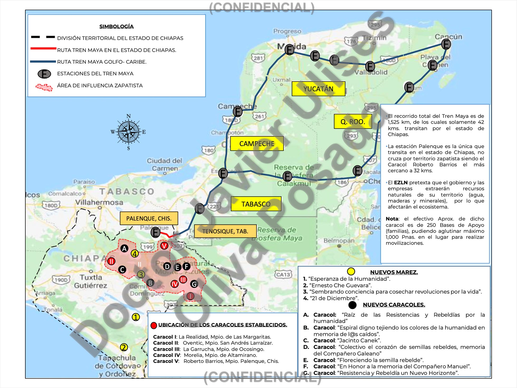 Up to nine different documents give an account of the operation of the caracoles, the movements of Subcomandante Galeano -formerly known as Marcos- or the political activities of María de Jesús Patricio Martínez, Marichuy, presidential candidate in the 2018 elections. Much of the military concern about the Indians has to do with their stance on some of the mega-projects promoted by President Andrés Manuel López Obrador. In the document entitled “Position of the EZLN on the construction of the Maya Train”, in January 2020, the investigation that Sedena carried out in the regions with the Zapatista presence trying to find out the way in which the insurgents acted against these works is revealed.