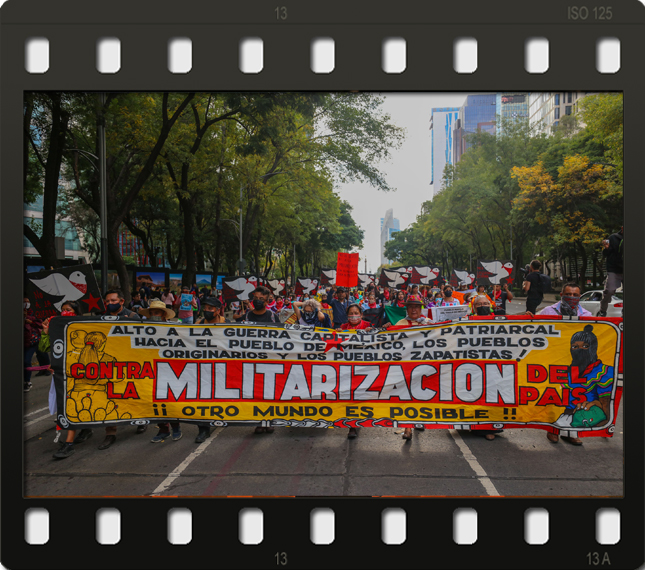 It is October 12th. The mobilization for Indigenous Resistance Day is against militarization. There is an ebb at ground level faced with the legalization of placing command of the National Guard, which is in charge of public security, under the Secretary of National Defense (SEDENA), hence the demand of the indigenous peoples, who also have memory and take advantage of the march to denounce what happens with militarization and what they have experienced in their communities with the army.