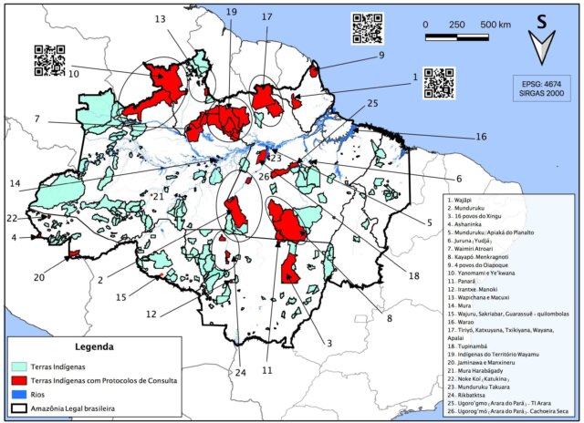 As can be seen in the areas colored in red, the territories where the peoples carry out “autonomous demarcation” with their own indigenous guards, are already an important part of the Amazon. This can grow since, as indicated by the green areas, there are many more villages that can take the same path in the face of the State’s refusal to demarcate their lands.