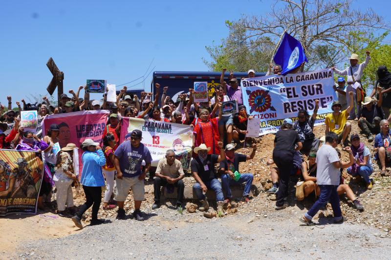 At the end of the sharing, a march was made from the sit-in to the highway to resume the march of the caravan and continue towards Veracruz.