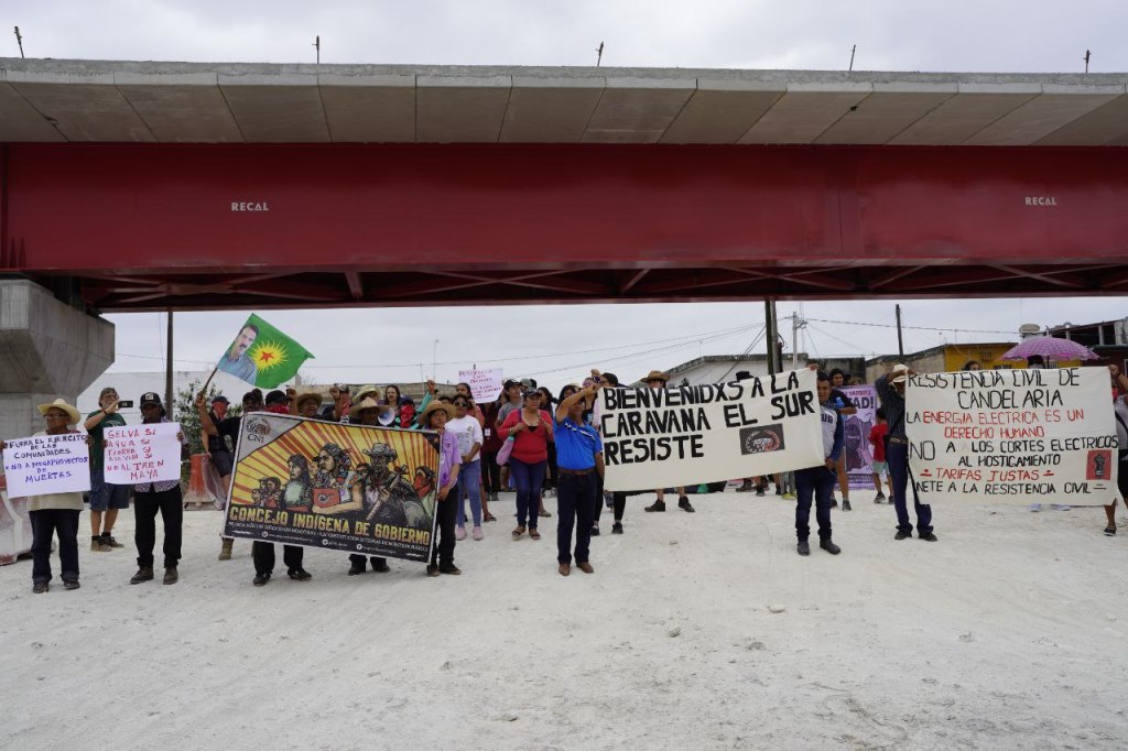 After the march, the Caravan leaves for Valladolid; we follow the death route of the Train with the clear objective of making visible the destruction it already generates, but also to give voice to the resistance of people in communities like Candelaria who refuse to be silenced, and who continue to fight to defend life.