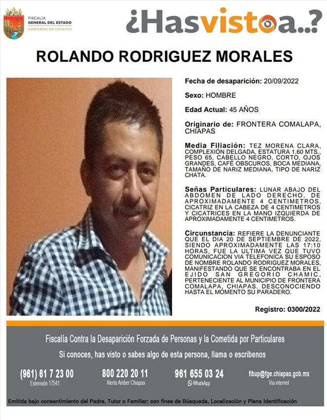 In the ejido Sinaloa, municipality of Frontera Comalapa, fear is lived, terror is breathed. irst it was the Ejidal Commissioner, Rolando Rodríguez Molares kidnapped and disappeared in September 2022; seven months later they came for the municipal agent, but now with his two children. They were taken and disappeared. Just 300 meters from a military garrison!