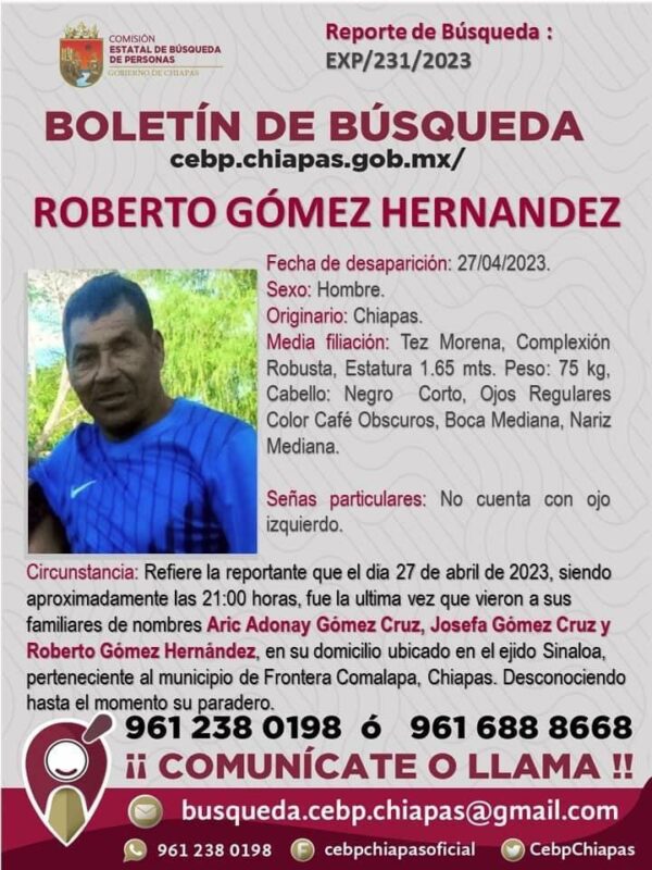 In fact, Roberto Gómez Hernández, as a municipal agent, had led a protest movement to demand the appearance alive of Commissioner Rolando Rodríguez Morales. But after everyone in that community being threatened, they stopped the protests and the relatives of the disappeared had to leave the community; now they live in forced displacement.