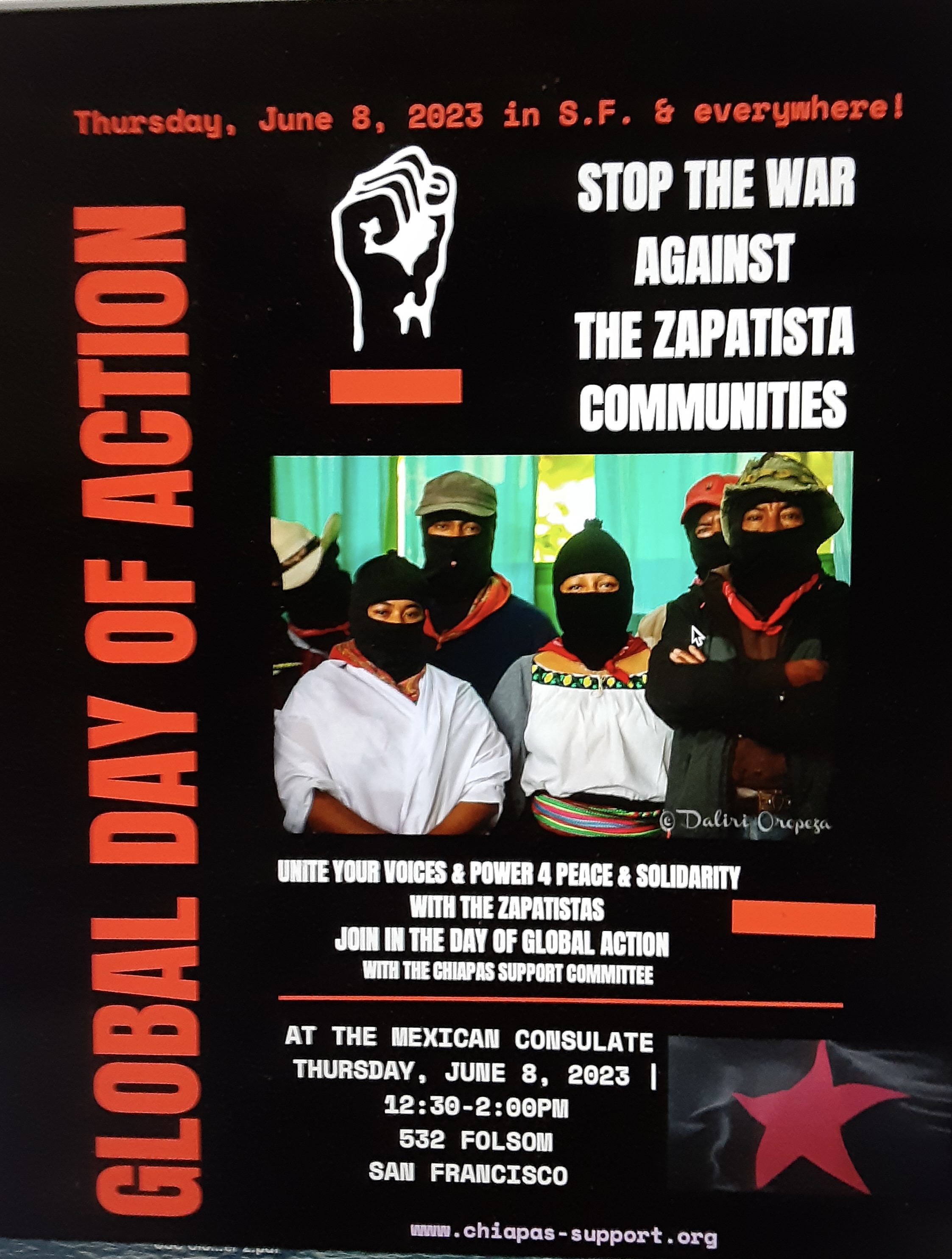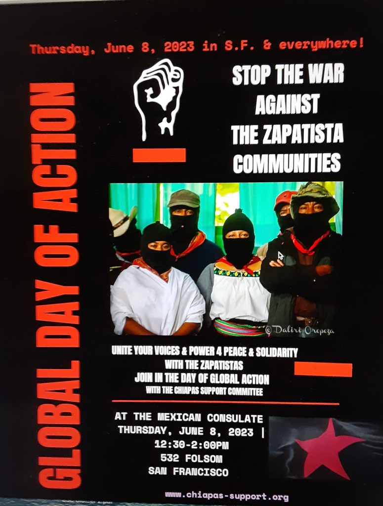 In “Stop the war against the Zapatista peoples” global day of action, members of the National Indigenous Congress (CNI), popular organizations, students, teachers and unions, as well as artists and academics, mobilized in Mexico City and Chiapas, while in other countries, such as Germany and Spain, protests were held in support of this day of struggle.