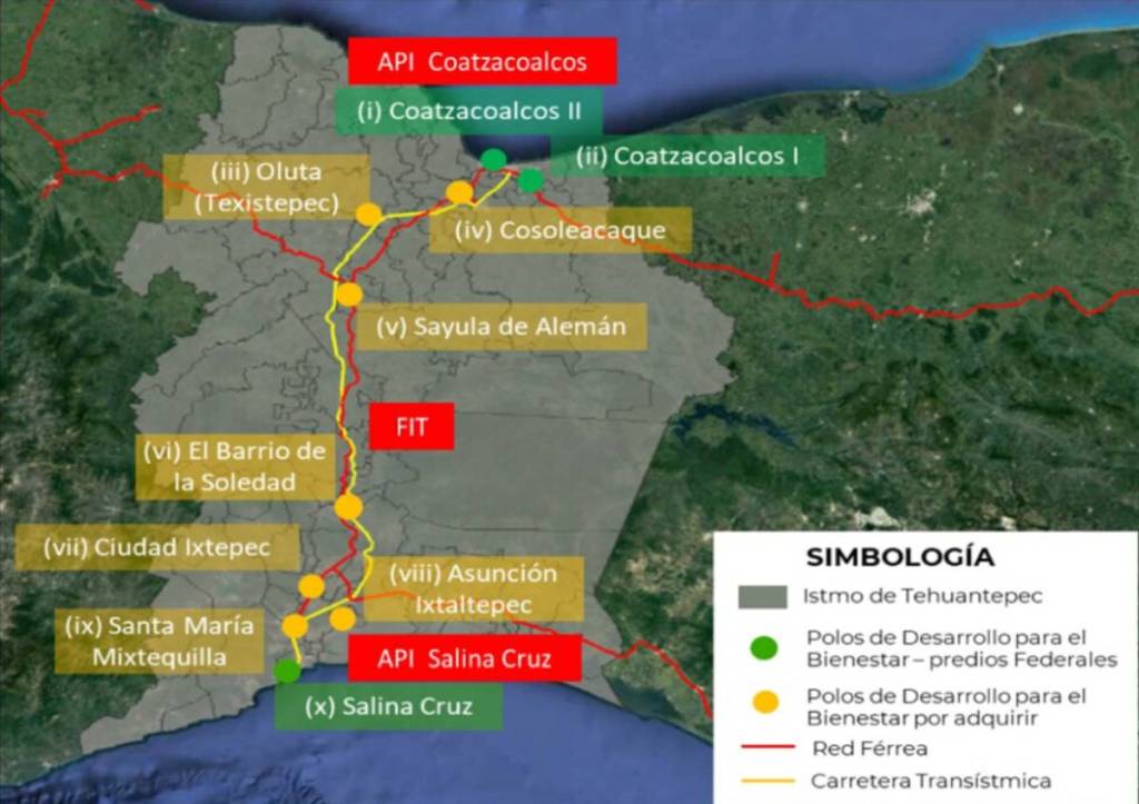 The development program covers 46 municipalities in Oaxaca and 33 in Veracruz, over a distance of about 300 kilometers. The industrial sites, called “Poles of development for well-being,” each of the 10 require 380 hectares.