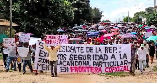 The march began at the entrance arch to the town and after walking two kilometers concluded in the central square. A banner with the legend: Mr. President of the Republic. We demand security for the Lacandón area, particularly in Frontera Corozal (sic), led the mobilization.
