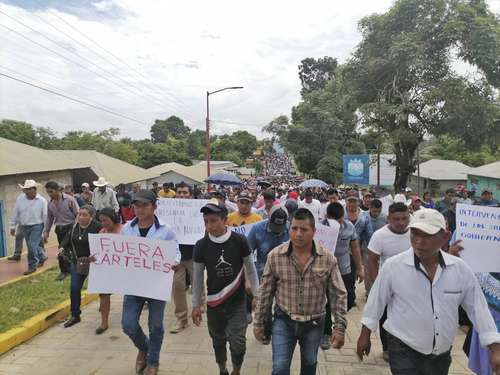 Approximately 3,000 residents of the community of Nueva Palestina, municipality of Ocosingo, Chiapas, marched yesterday to demand the presence of security forces because members of organized crime, who are disputing the territory, are trying to charge small businesses with “derecho de piso” (extortion to continue operating, aka “protection monay”).