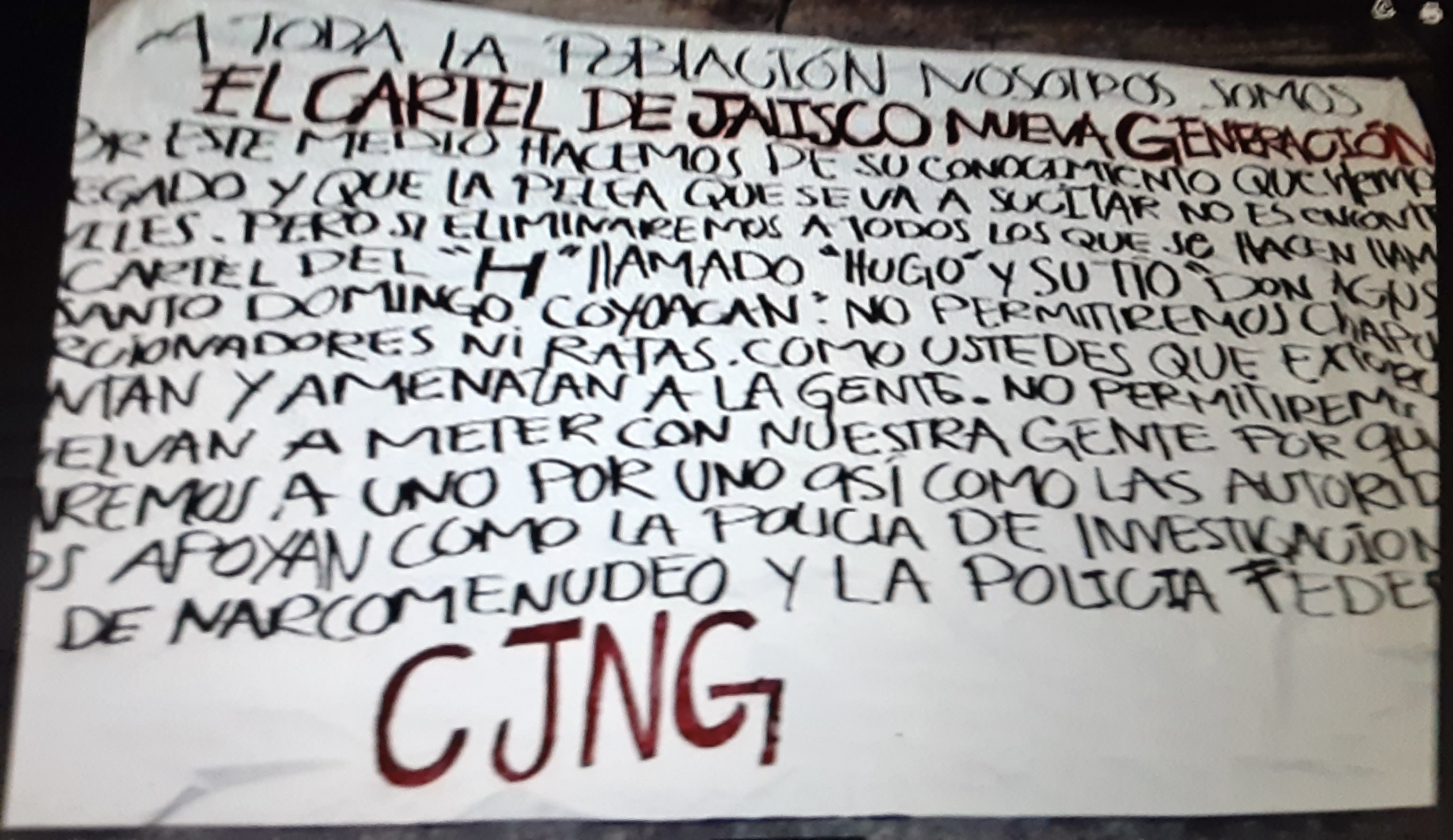 So that there would be no doubt about their intentions, they distributed a notice entitled “Tread carefully, raza.” There they warn that the Jalisco Nueva Generación cartel has arrived and established a curfew starting at 11 p.m. They threaten to torture, kill and dismember the fucking rats that we have already located (sic). They prohibit driving in vans with tinted windows (very widespread in the area) and announce a total clean-up, especially of glass sellers and consumers.