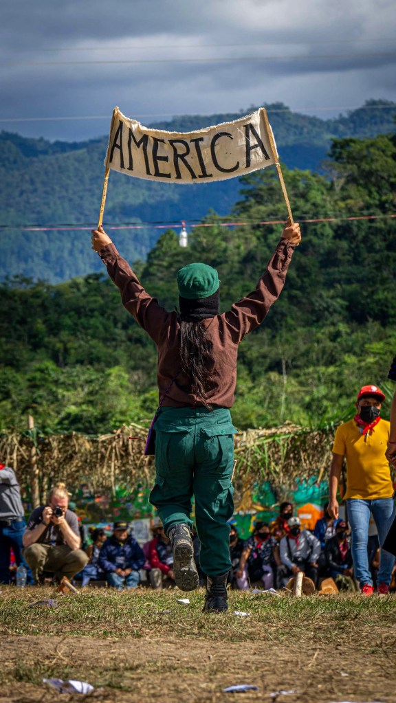 Clouds pouring between the mountains like waterfalls; starry nights like nowhere else; a Mayan past, ancestral native languages; a fight for freedom; a fight against capitalism and death and destruction, all of that is a formula, one that creates rhetoric; In every look of every insurgent there is a metaphor, a mirror, a simile, like a heart on fire.