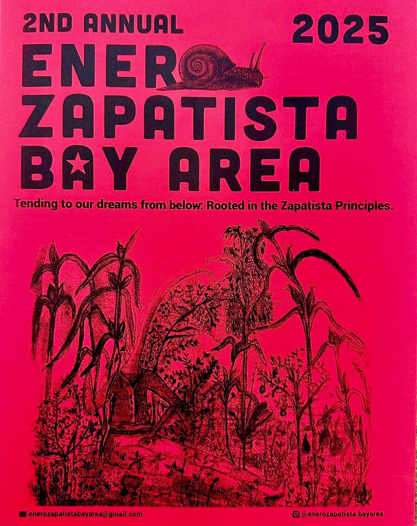 A group of individual activists, community-based organizers and collectives based in Oakland, San Francisco and other parts and cities of the Bay Area have organized the second annual Enero Zapatista, “Tending to our dreams from below: Rooted in the Zapatista Principles,” a month-long series of gatherings and forums with art, poetry, music, discussions of land justice, sovereignty and solidarity from Chiapas to Palestine. (See Enero Zapatista calendar below.)