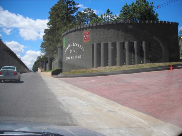 A view of the entrance to Rancho Nuevo Military Base from the highway. It’s located near San Cristóbal de las Casas, Chiapas.