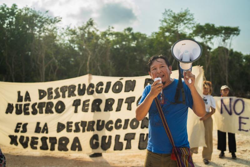 “With a lot of courage, with a lot of anger in the middle of a sacred territory, the jungle that our ancestors have bequeathed to us, a territory for which our grandfathers and grandmothers fought to take care of and to guarantee that we and our granddaughters can enjoy the well-being that the territory gives us. This Maya jungle is being dispossessed; this Maya jungle is being brutally murdered. Here, where we are now, there were cedars, mahogany, chicozapotes, the deer walked here, the jaguars walked here.