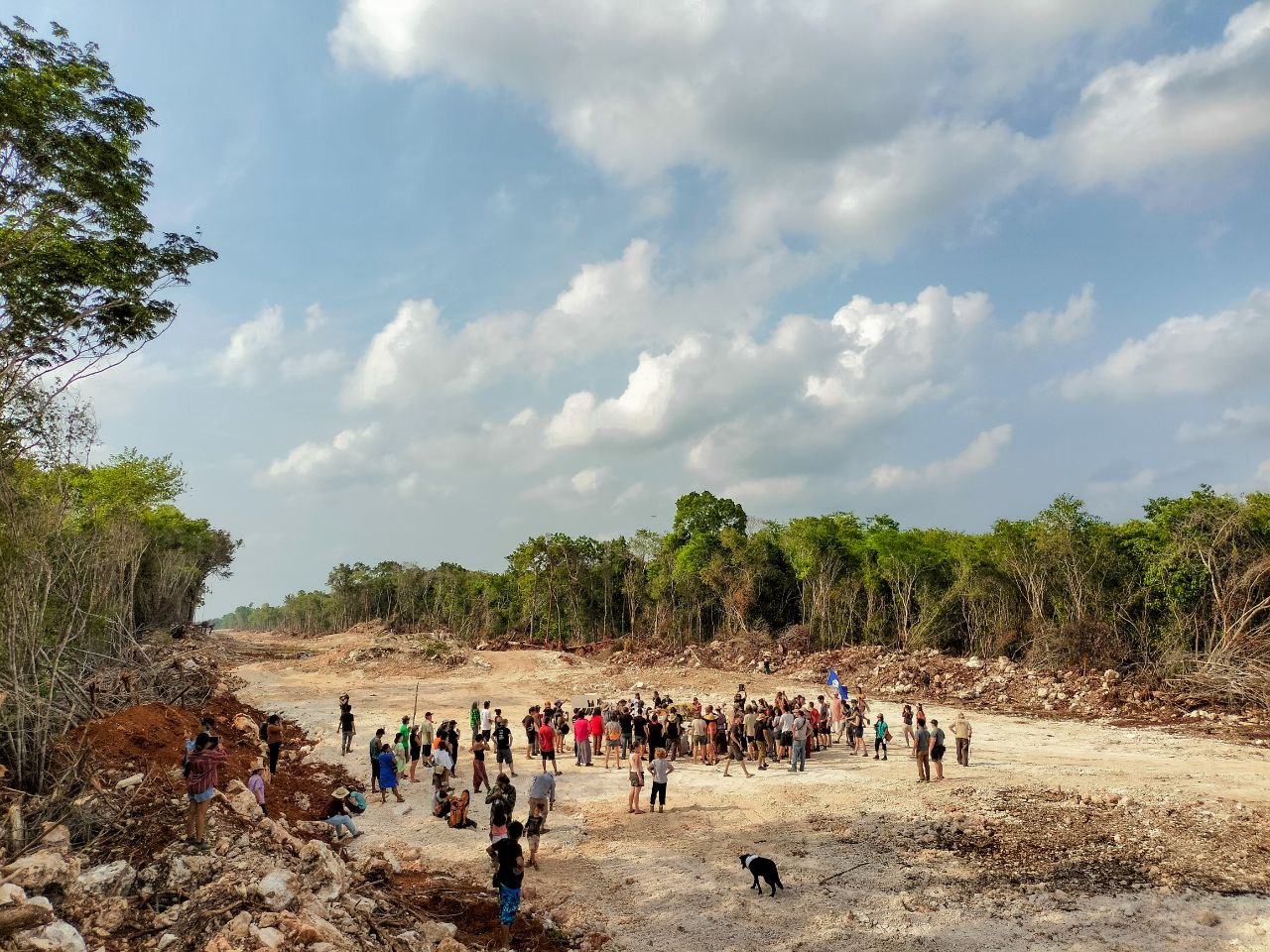 On day 9 of the El Sur Resiste | The South Resists caravan, we visited the Xpujil [1] community, Calakmul, Campeche; one of the places where section 7 of the Maya Train project is being built and has one of the development poles that includes the train station, a military base, nine military barracks, six material banks, a hotel, a casino and a deep well.