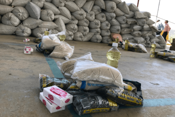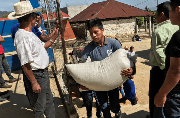 Monday the 14th of July, in the morning, representatives of each of the 115 displaced families arrived at the municipal seat of Aldama. There, each family received a sack with corn, a little bit of beans and salt.